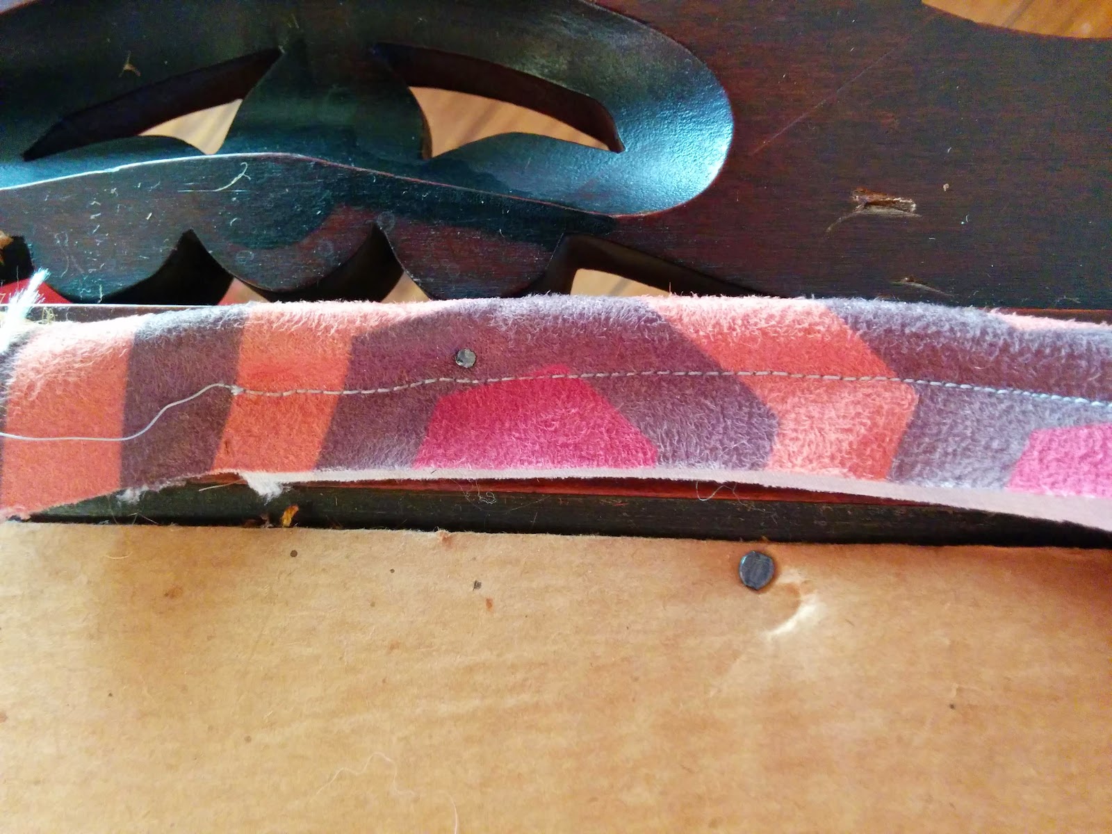 Here's the removal of the rear panel on the back. Note the tacking strips and actual nails instead of staples. There's a bit of cardboard in there for stiffening, and it's in great shape.